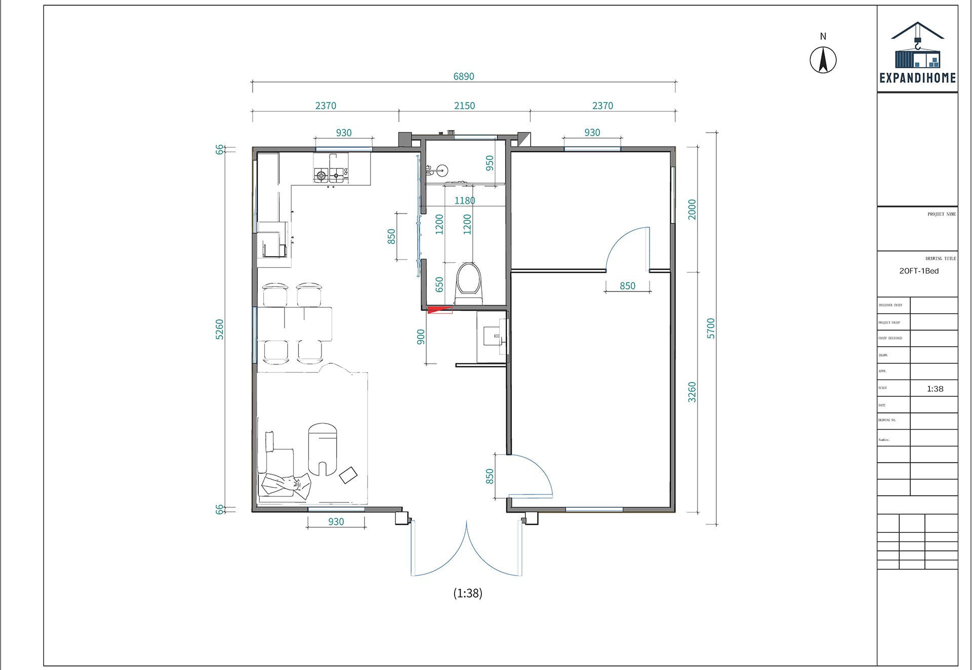 EXP40 class 1a building 20ft 1bedroom 1bathroom 1kitchen