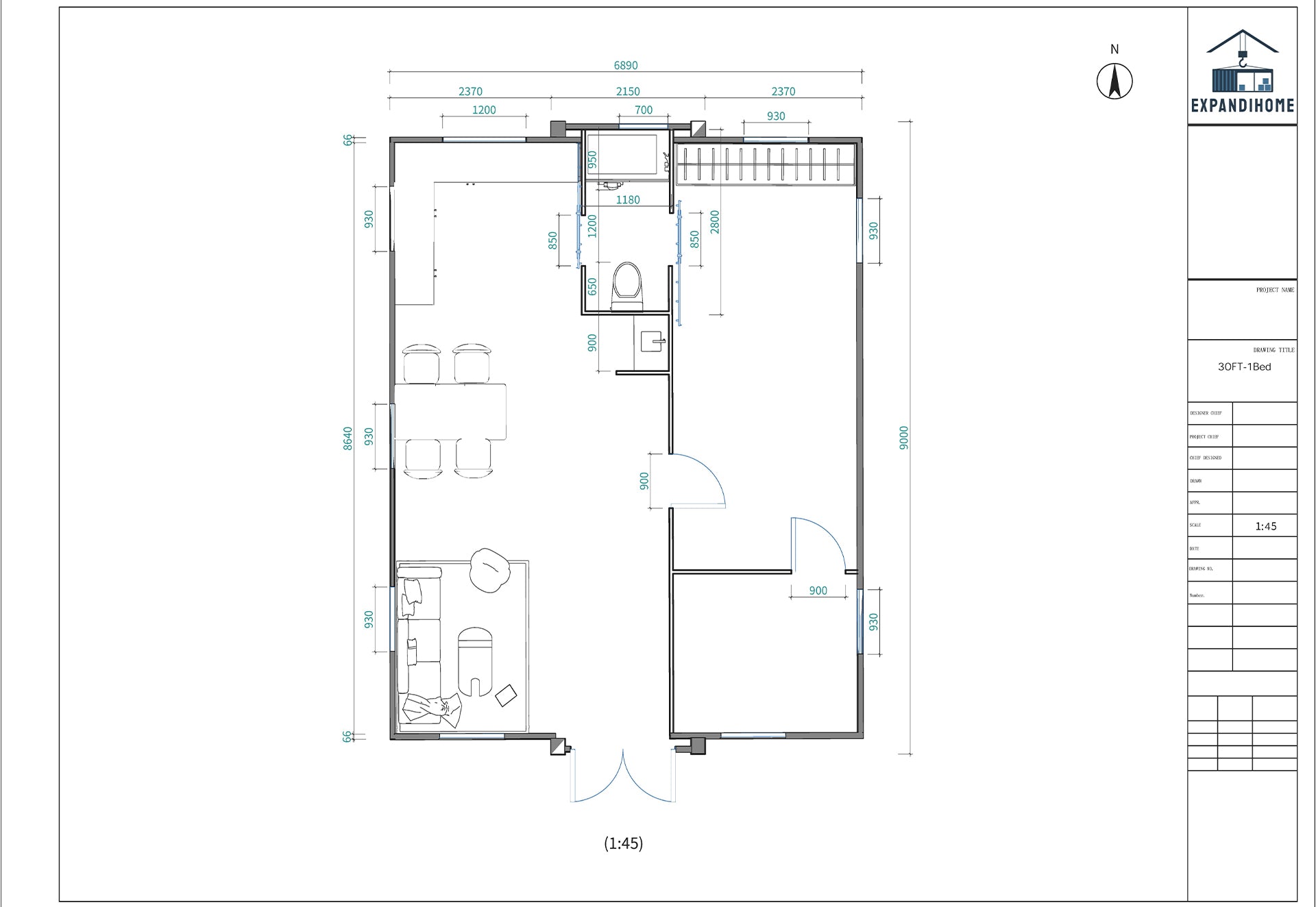 - External Dimensions (mm): 6890W*9000L*2850H