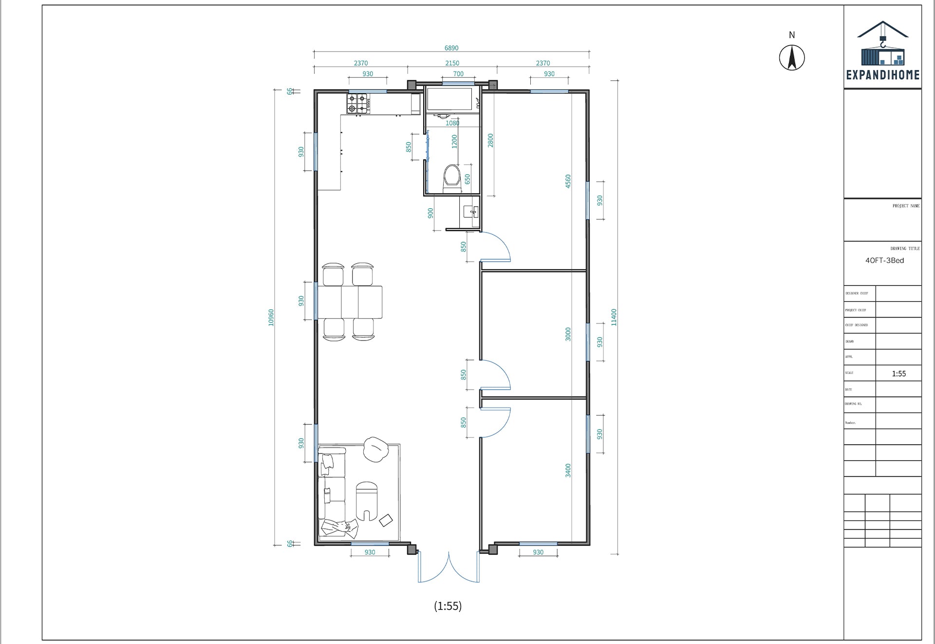 EXP80-3B class 1a building 40ft 3bedrooms 1bathroom 1kitchen